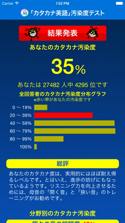 このアプリであなたのカタカナ英語汚染度を診断してみましょう。