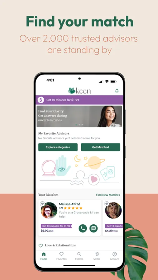 With over 45 million meaningful conversations and counting, the Keen app provides on-the-go guidance for those seeking greater well-being. We empower you with insights in a secure environment to help reveal your best path forward. Our global network of advisors is fully vetted, deeply experienced, and offer services and skills that include: