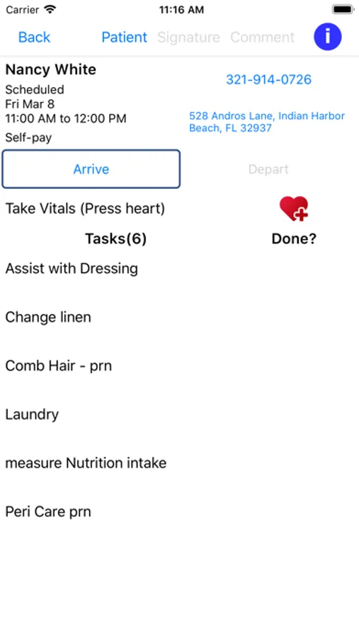 - Comment System: was the patient not home? Was the GPS location a bit off? Record any noteworthy information as a comment for the back office to see.