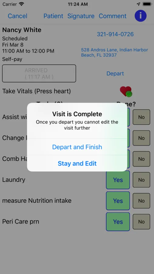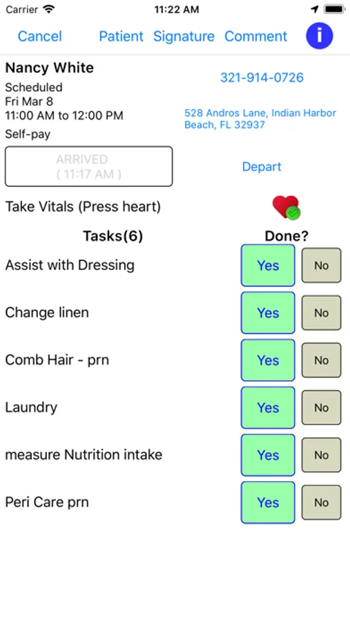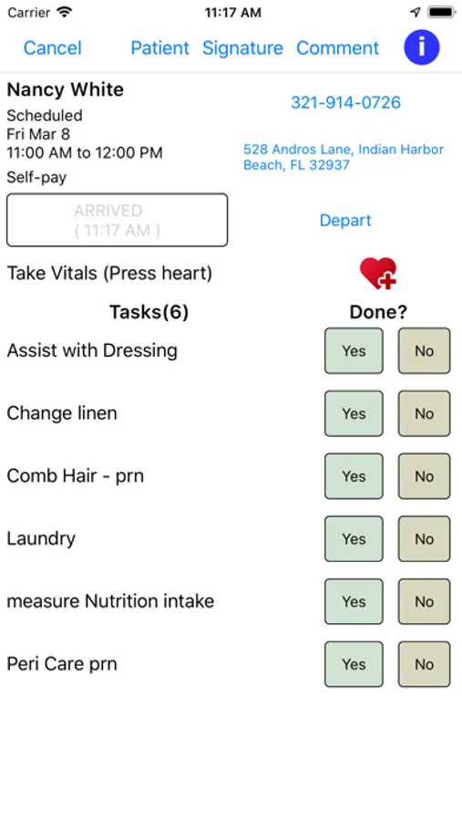 - Visit Verification: confirm your GPS location and arrival time just by pressing the “arrive” button! Likewise, confirm your location and departure time by pressing “depart”.