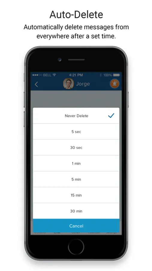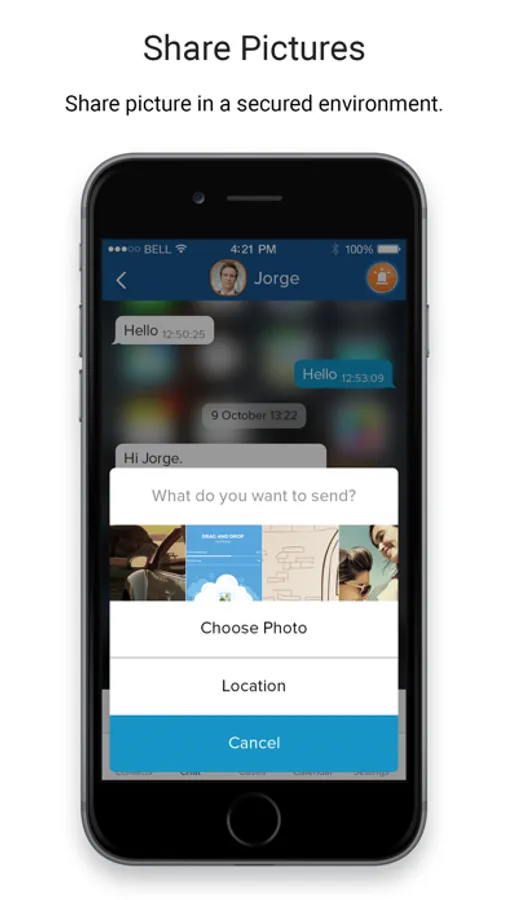 All messages, documents and images are encrypted with 256 bit encryption. You are able to recall and delete messages from every device that received it. We also do not keep a history of your messages on our servers and do not store them anywhere.