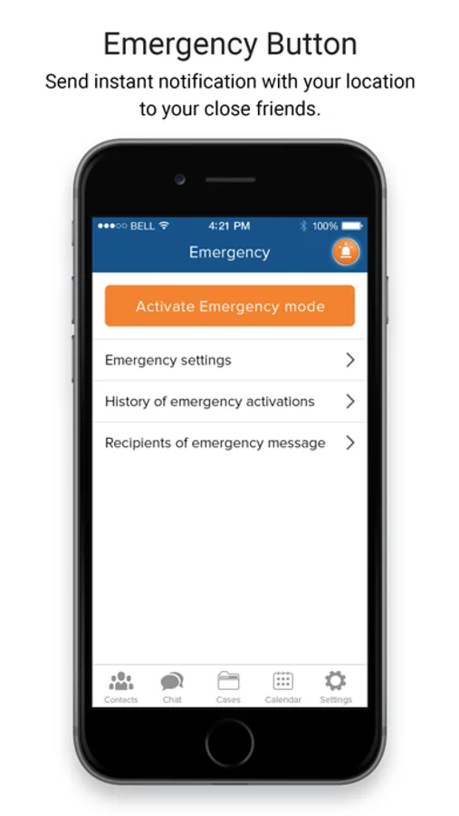 Enkrypt has a Panic Button located at the top right corner of each screen which allows you to notify your family and friends of any emergency, sending them your location and audio recording the event. If this emergency is impending contact with law enforcement, your attorney also will receive this notification, allowing him or her the ability to offer you a defense at the very inception of your case.