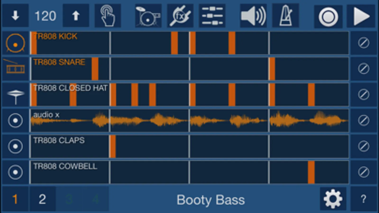 You can also add audio tracks to capture your ideas. Make a beat, sing a bass line, play guitar, sing a melody, mix, add effects if you like. Then you can export to WAV or AudioCopy, or link to another app via Inter-App Audio. Email your ideas or import via iTunes.