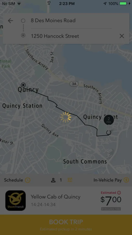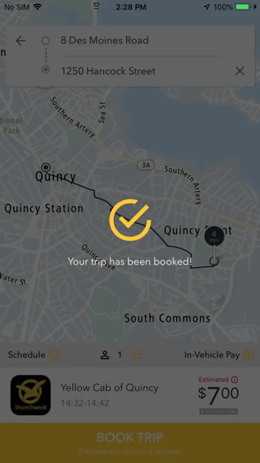 Order a taxi cab in Quincy, Weymouth, Braintree, Randolph, Milton and Boston from Yellow Cab of Quincy (operated by Shore Transit) using your iPhone