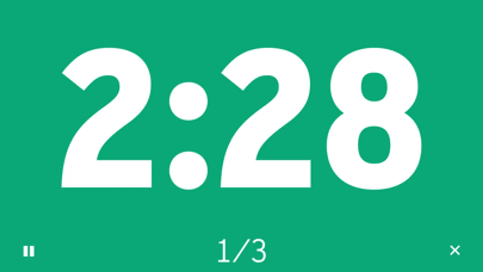 - Timer color lets you see at a glance where you are - blue at the start, yellow at the halfway mark, fading to red at the end.