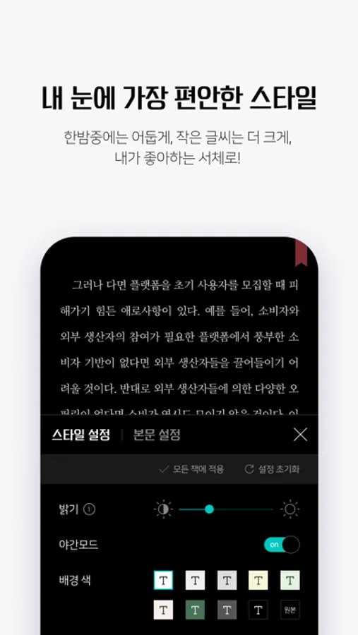 - 글꼴, 문단, 배경테마 등 다양한 옵션으로 내 눈에 가장 편안한 스타일로 보기
