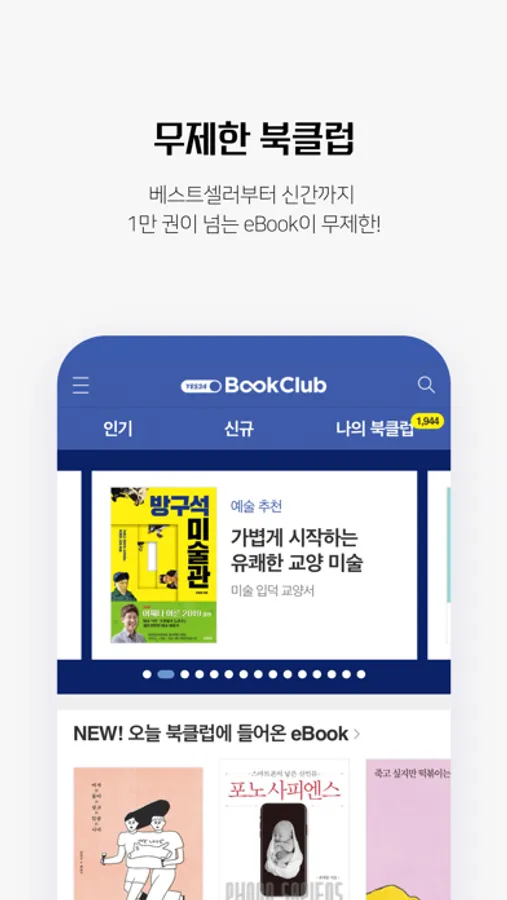 완전히 새로워진 예스24 eBook 앱으로 독서 라이프를 즐겨보세요!