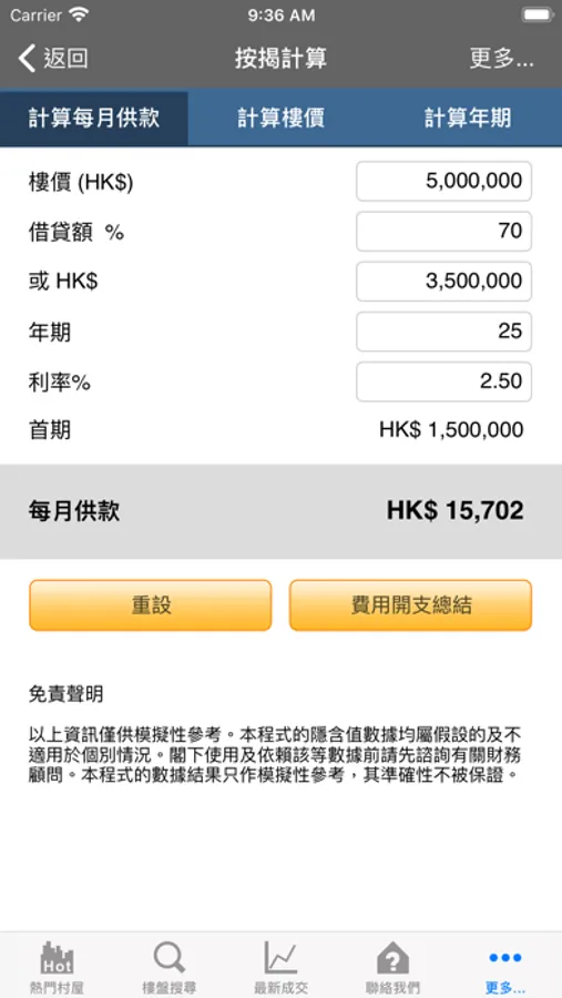 按揭計算 - 提供用戶計算置業開支及按揭貸款