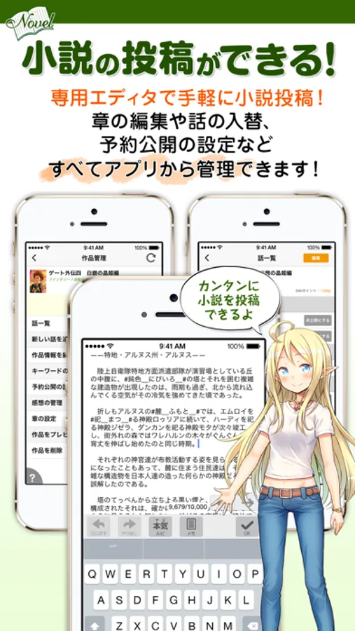 専用エディタで手軽に小説投稿!