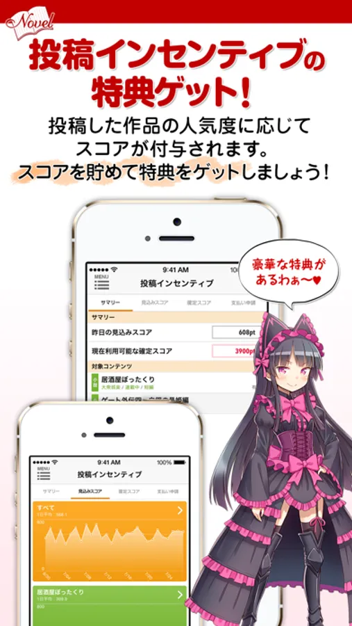 投稿した作品の人気度に応じてスコアが付与されます。