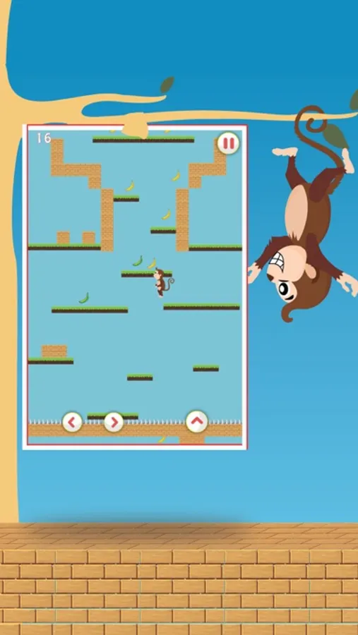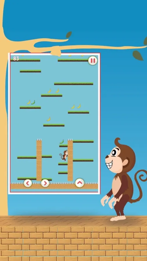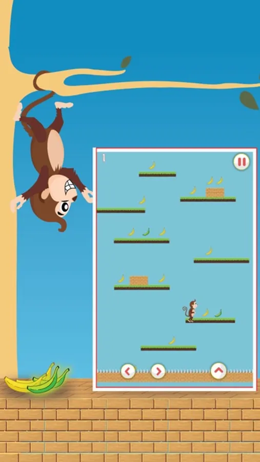 This cute little monkey baby is lost and hungry. He fell into a trap which is closing as time passing. Help him to climb to survive and get banana to feed his hunger. All you have to do is jump up. keep him going up up and up. If he stays he will be captured in trap. Show your love for cute little monkey baby. can you do what it takes to save him. its not that difficult just keep jumping. Jump on the platforms to go up and get bananas. This is not that hard, simple controls, tap to left right and tap to jump.