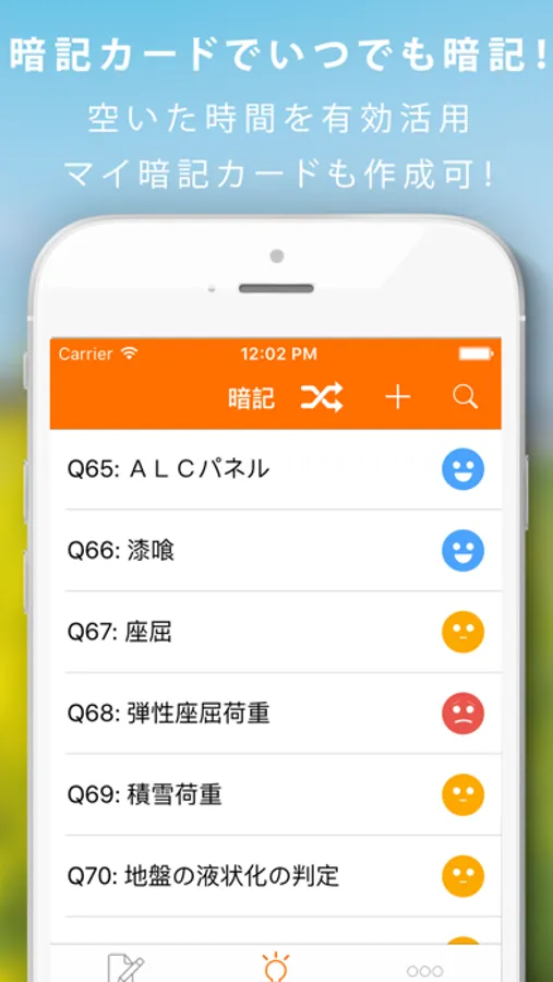多数の暗記カードが収録されており、さらにオリジナルの暗記カードを追加することもできるので、ドンドン暗記がはかどります!