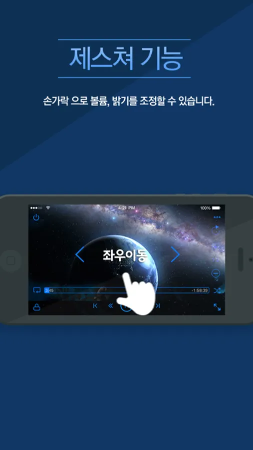 - 제스쳐 기능(볼륨 조절, 밝기 조절, 영상 탐색)