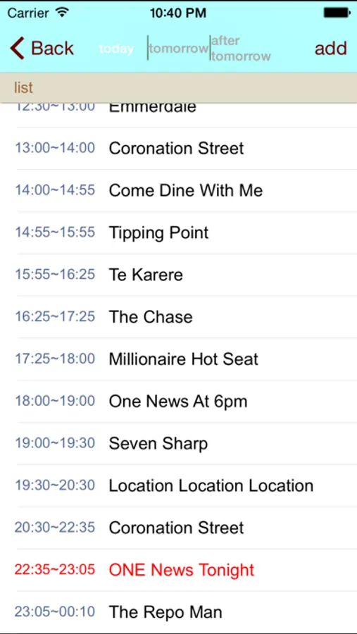 The application provides you navigate tv programs in the New Zealand. Never miss your favourite programs to add your favourite channels. Include channels: TV One, TV2, TV3, FOUR, PRIME, The Edge TV, Shine TV ... etc.