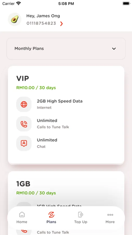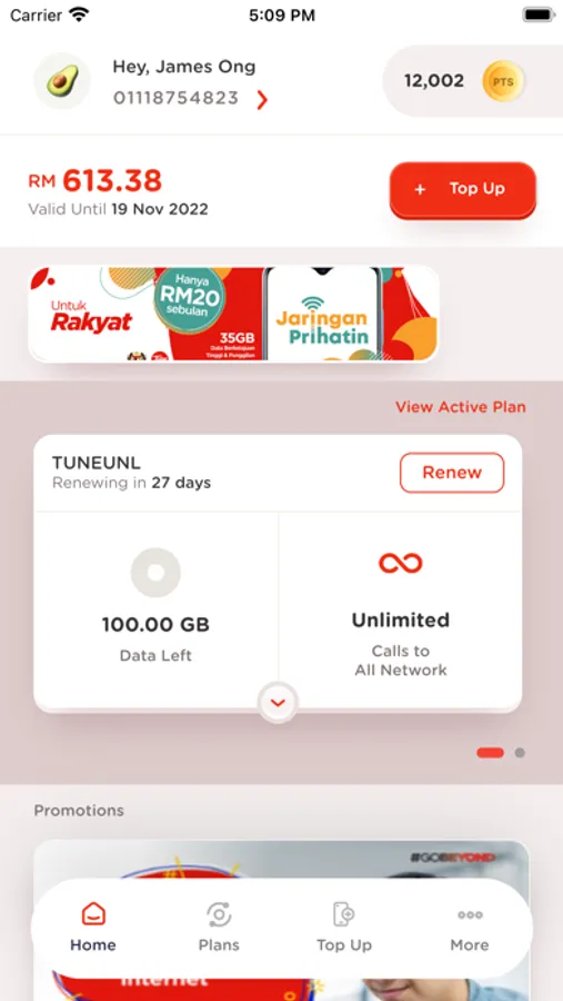 2. Self Care – Manage all your prepaid mobile number(s), Profile details, BIG Points, Top Up (instant & vouchers), Auto Top Up (CIMBClicks & PayPal), Manage data plan subscriptions, Credit transfer, Transaction history etc.