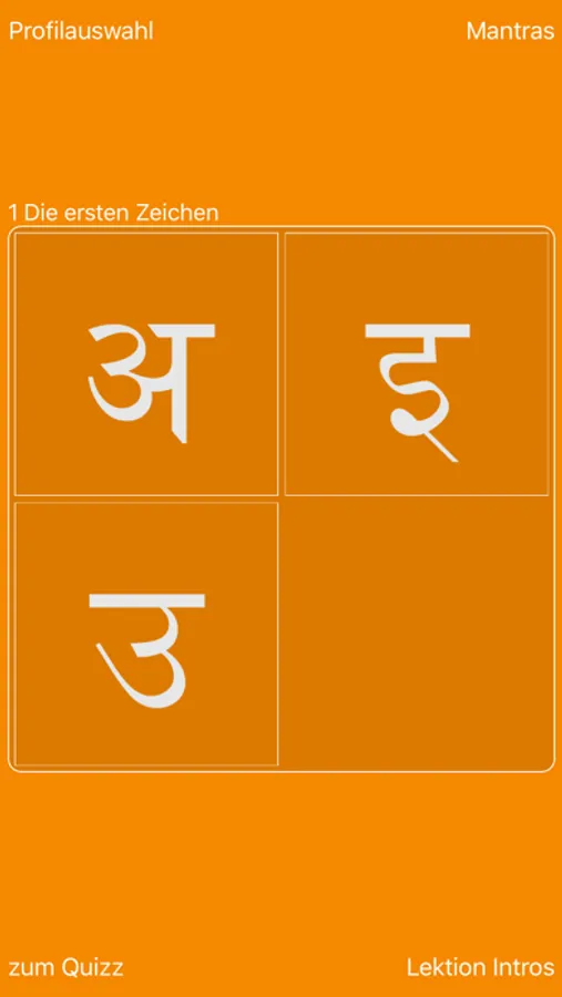 Ein Quizz, um die klassische indische Schrift, Devanagari, lesen und schreiben zu lernen und die Theorie hinter diesem Alphabet umfassend zu verinnerlichen.
