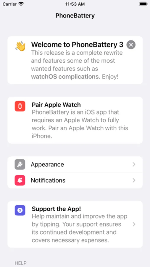 PhoneBattery is a simple way to check your phone's battery life on your Apple Watch. Why would you want that? Well, it is incredibly useful to know how much battery is left without taking your phone out of your pocket for such a simple task.