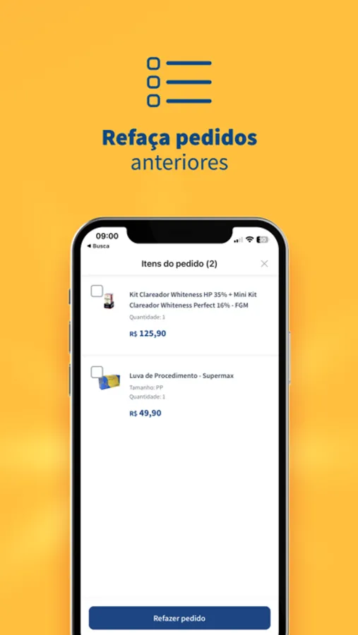 Você pode comprar novamente os produtos odontológicos das suas marcas favoritas sem precisar pesquisar novamente, item por item, toda vez que quiser renovar seu estoque.