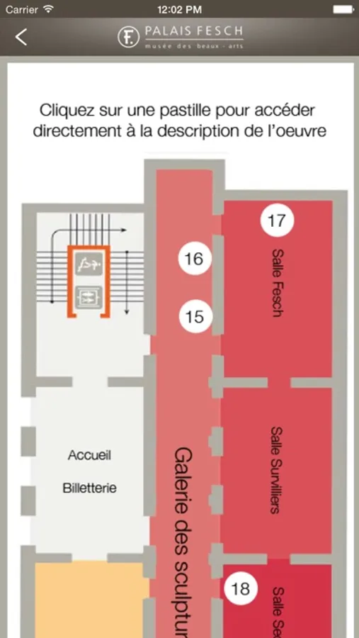 L'application vous propose un audio guide complété d’un plan de visite, d'une description détaillée des œuvres, d’ informations pratiques ainsi que d'une rubrique actualités.