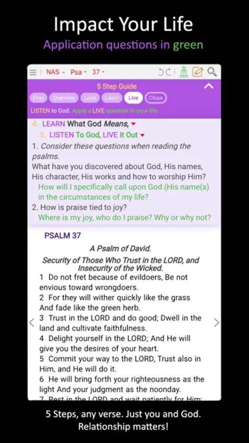 10’s of thousands of what to look for and application questions, in easy to find green - helping you understand and APPLY what HE shows you to your life for IMPACT!