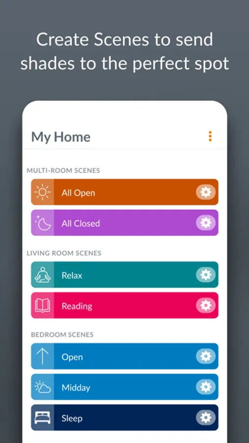 * Create customized shade position settings called "Scenes" for convenience, or to manage your natural lighting and privacy needs throughout the day.