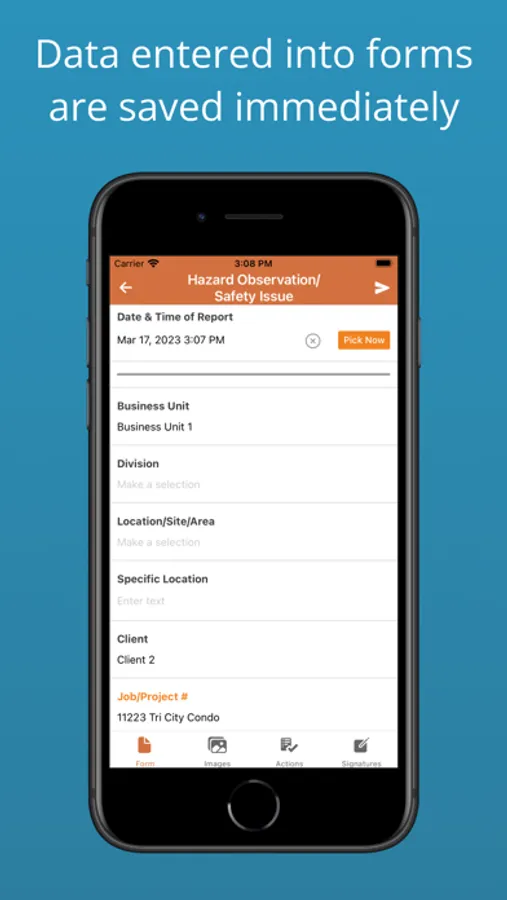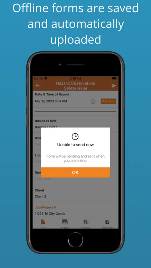 When completing a form, the Cube app saves data automatically so users will never lose data. This functionality is ideal for extensive forms, such as incident investigations or worksite inspections, where users have multiple instances of data entry interaction with the app.