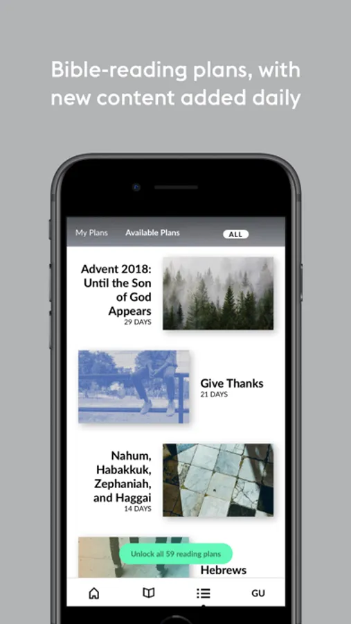 - Bible-reading plans, with new content added daily & full-access, monthly auto-renewable subscription available