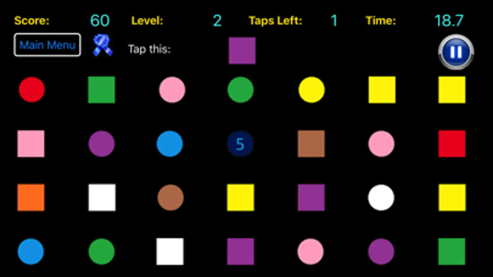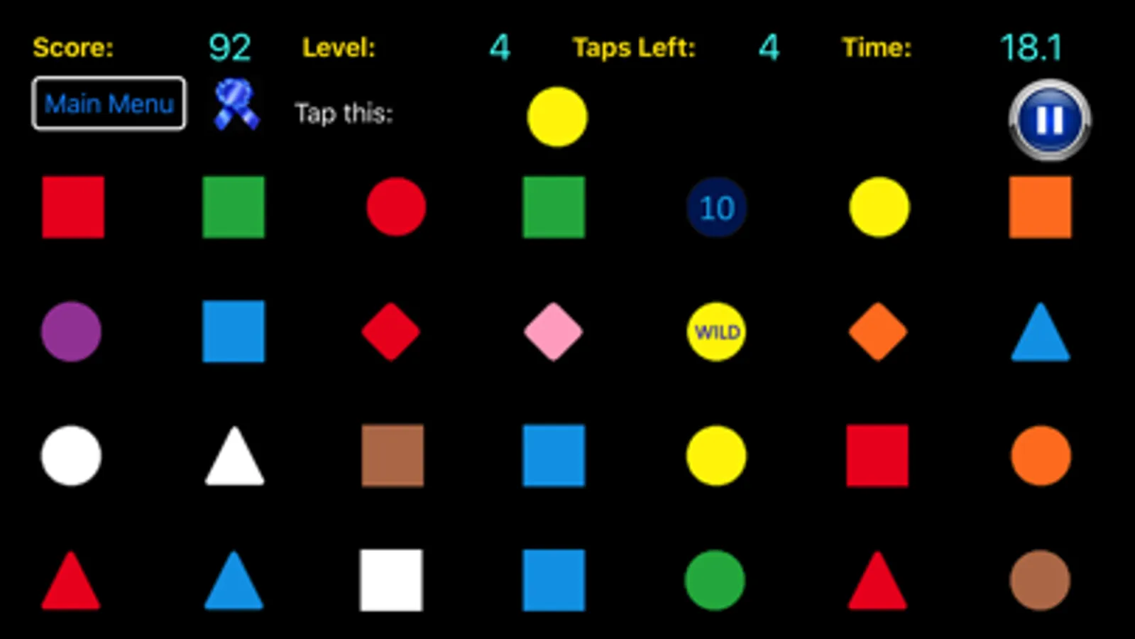 Here's a fun, exciting, and challenging game the whole family will love! All Tapped Out will give you hours of enjoyment. Look at the main colored shape to the right of the "Tap this:" label and then try to tap the matching colored shapes below. Do it quickly because those shapes are going to change. The faster you tap the matching shapes, the more points you score and the better chance you have of beating each level. Levels become increasingly difficult as there are typically more taps required and less time to tap. The status bar shows you how many taps are needed in the time remaining. Bonus time and bonus points buttons appear randomly throughout each level. They don't count toward your total taps but they will boost your score and give you more time to finish. Every fifth level is a challenge level where the images change more quickly and the object is simply to click as many as you can! Earn bonus points if you click enough! Challenge your family! Challenge your friends! See who can stay at the top of the leaderboard. Keep those thumbs tapping away until you are All Tapped Out! Download it now. You will be playing in seconds!