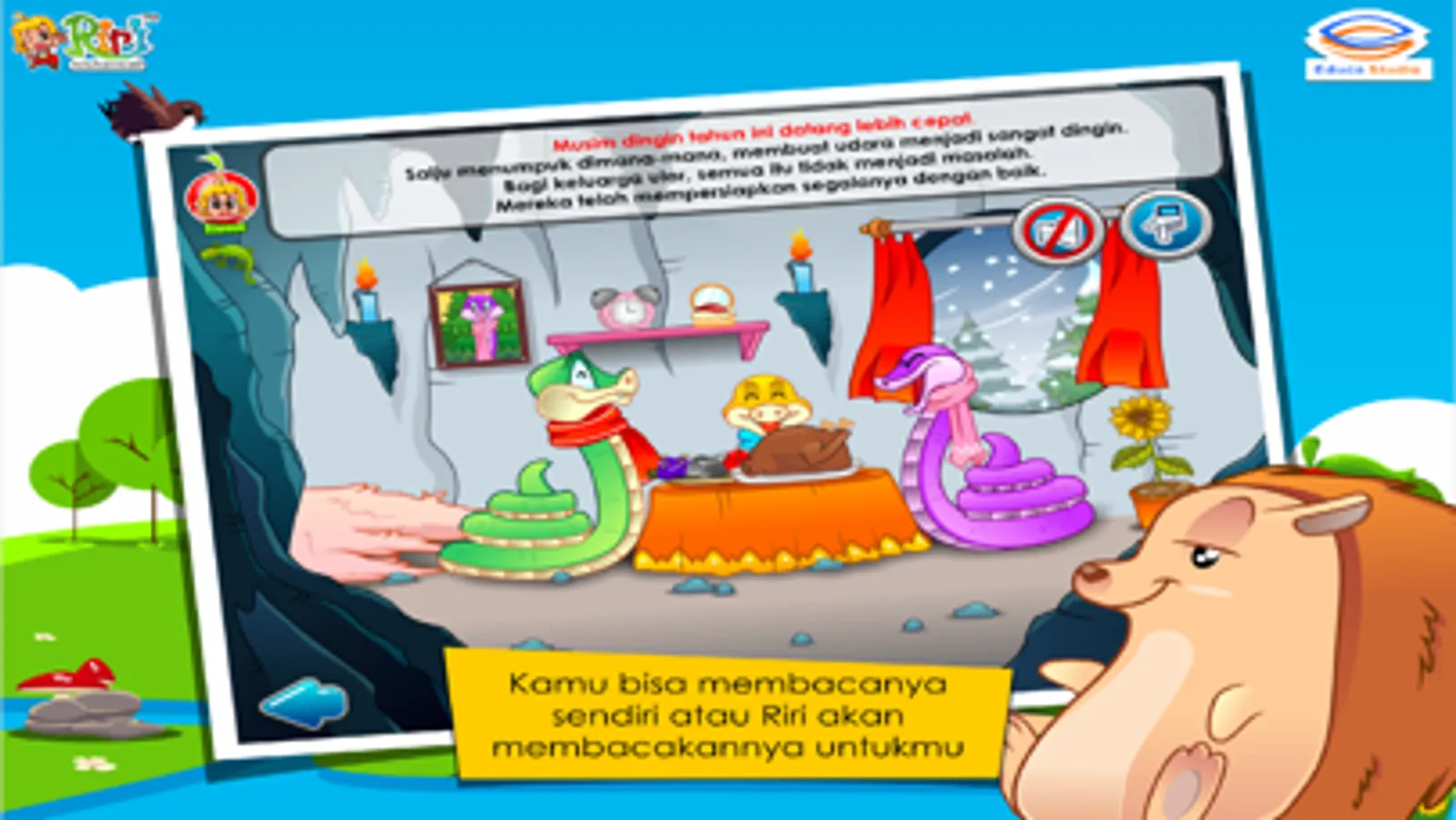 RIRI (Cerita Anak Interaktif) berusaha menghadirkan sebuah aplikasi buku cerita anak dan dongeng yang menarik dan interaktif. Dikemas menggunakan bahasa yang ringan, sehingga mudah dimengerti oleh anak-anak. Aplikasi ini dilengkapi dengan animasi, suara serta musik pendukung yang menjadikan lebih menarik.