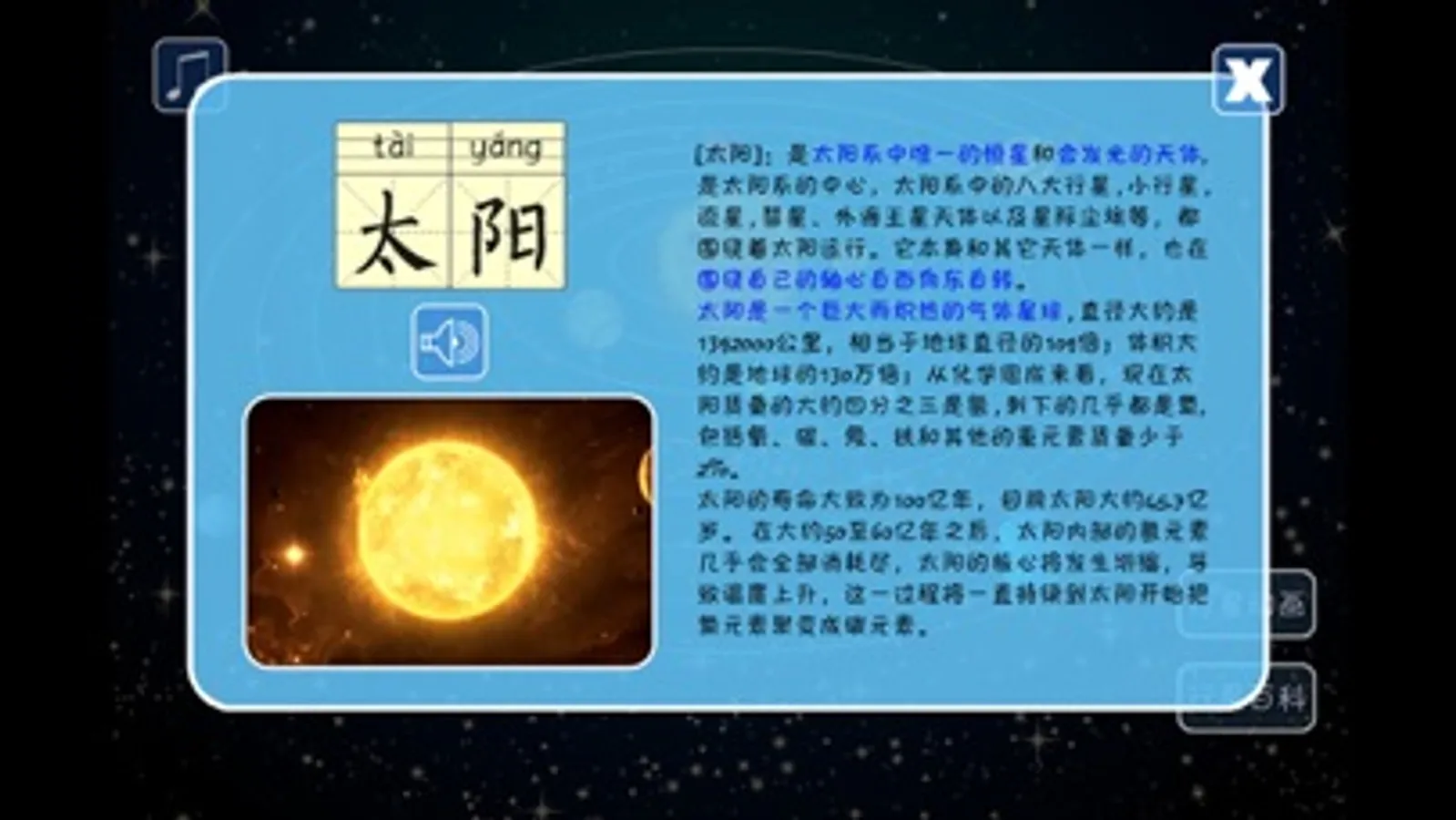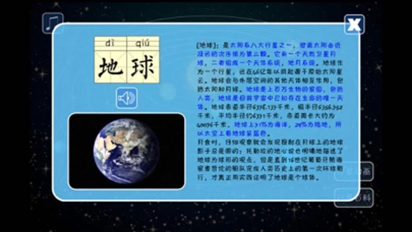 《宝宝星球认知》是桔宝宝百科知识中的一款作品,让孩子只需要简单的操作就能了解太阳系各星球的知识,此应用精致易用的带宝宝了解星空和宇宙,掌握太阳系的星球知识,开拓视野。