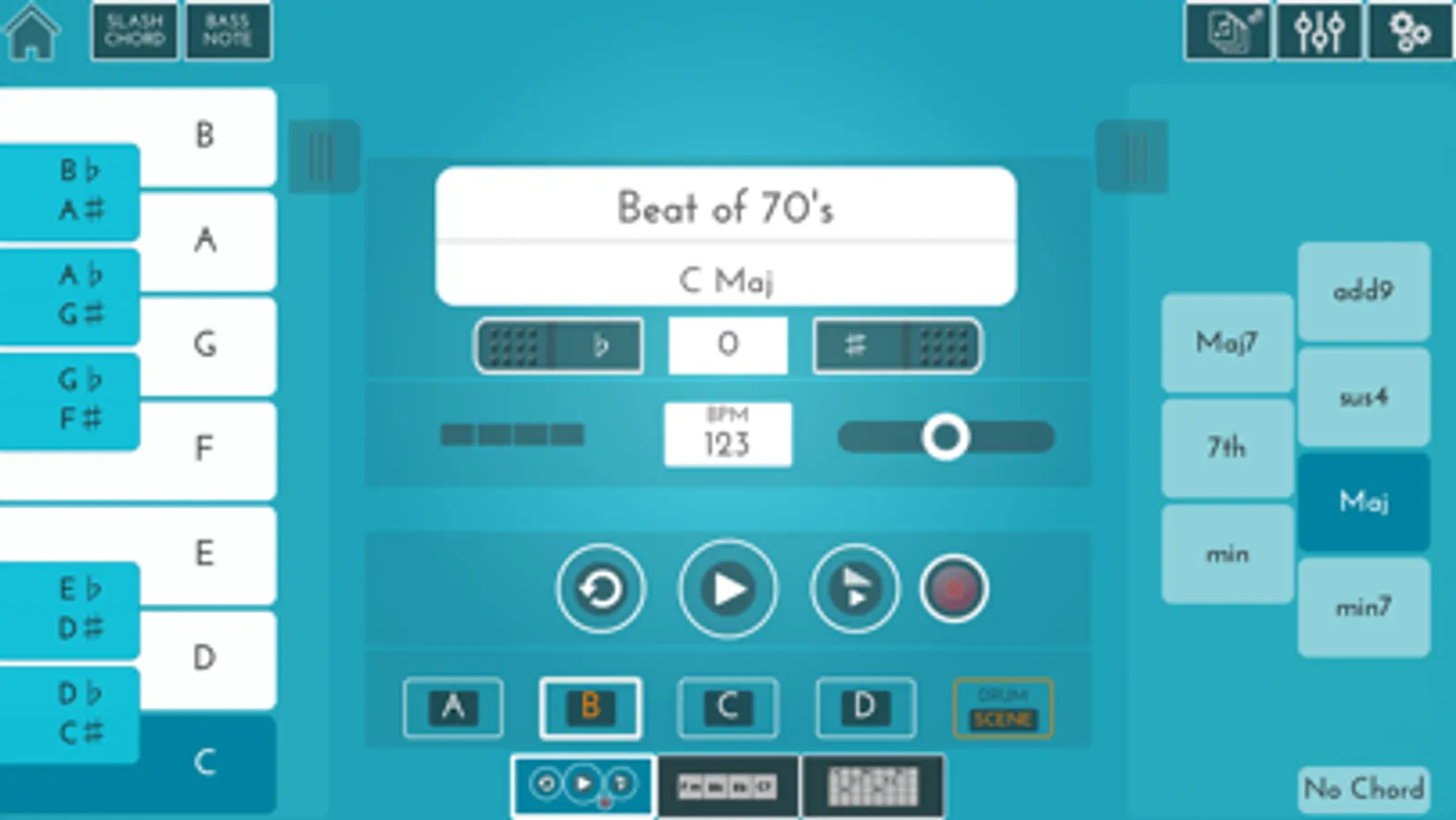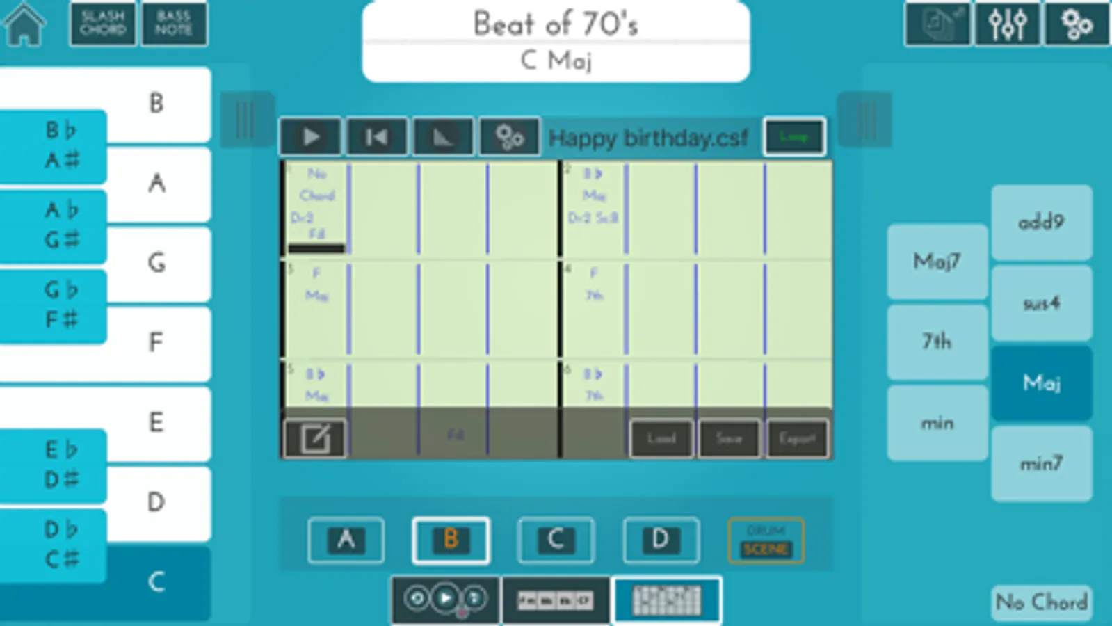 Connect the USB MIDI cable of your digital musical instrument and “X MURE” will automatically detect your played chords.