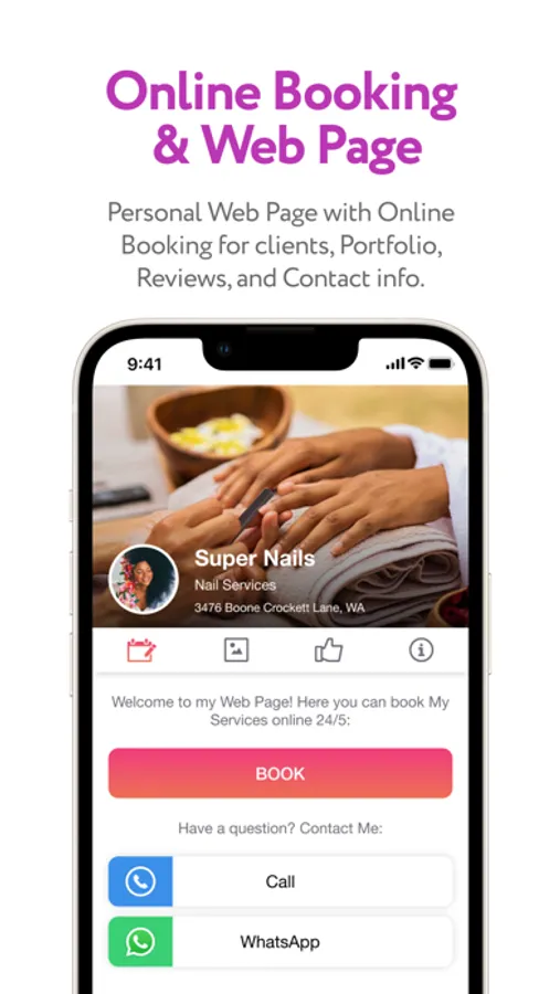 Personal Web Page with Online Booking for clients, Portfolio, Reviews, and Contact Info.