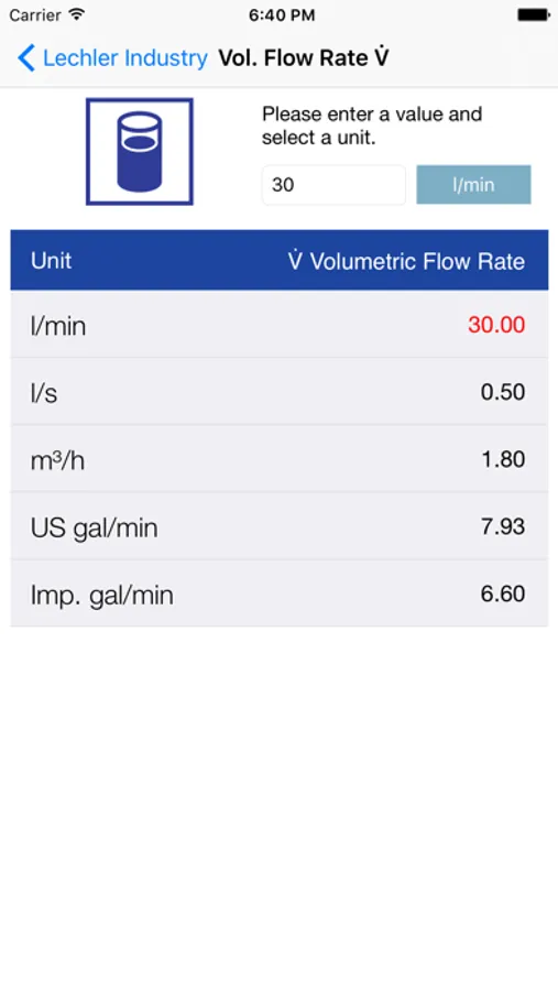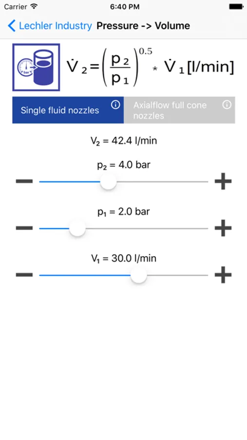 The Lechler Industry App offers you an easy conversion calculator to convert pressure, volume and flow rate between different units. Just enter a value and unit and you will see the conversion result in different units.