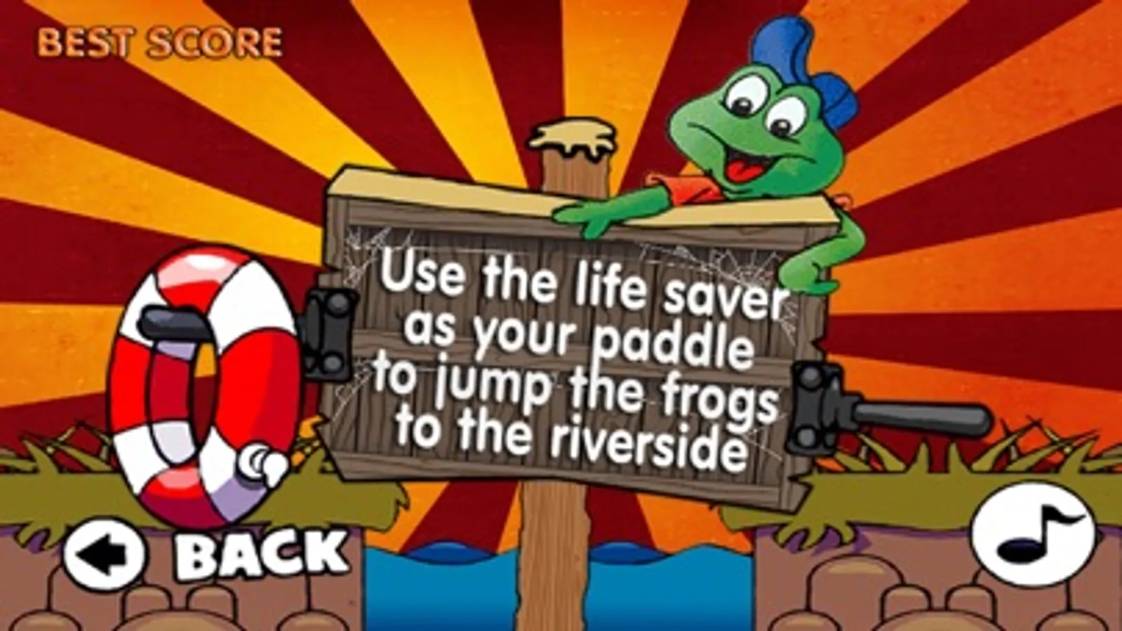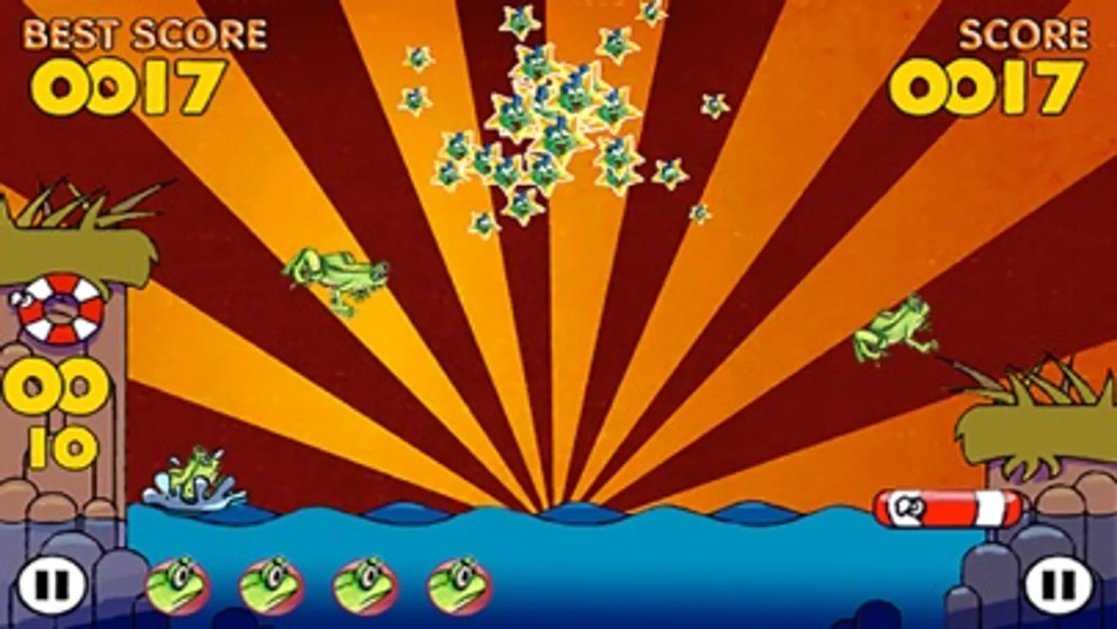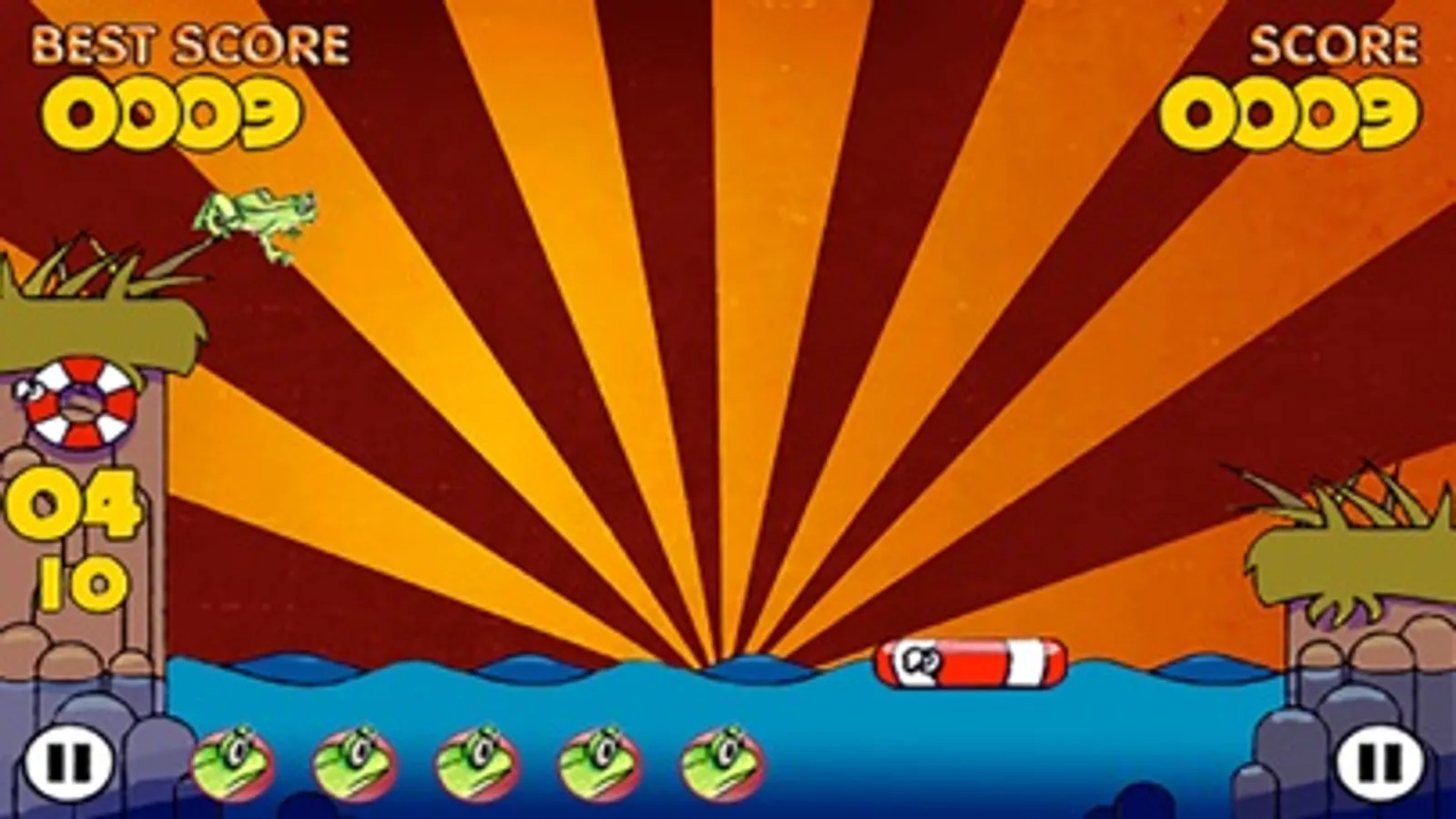 The game is easy to play - you have only move the life saver left and right to save the frogs to fall in the water. You start with 5 lives and you get a new one after you finished a level. If all level frogs fall in the water the game ends!