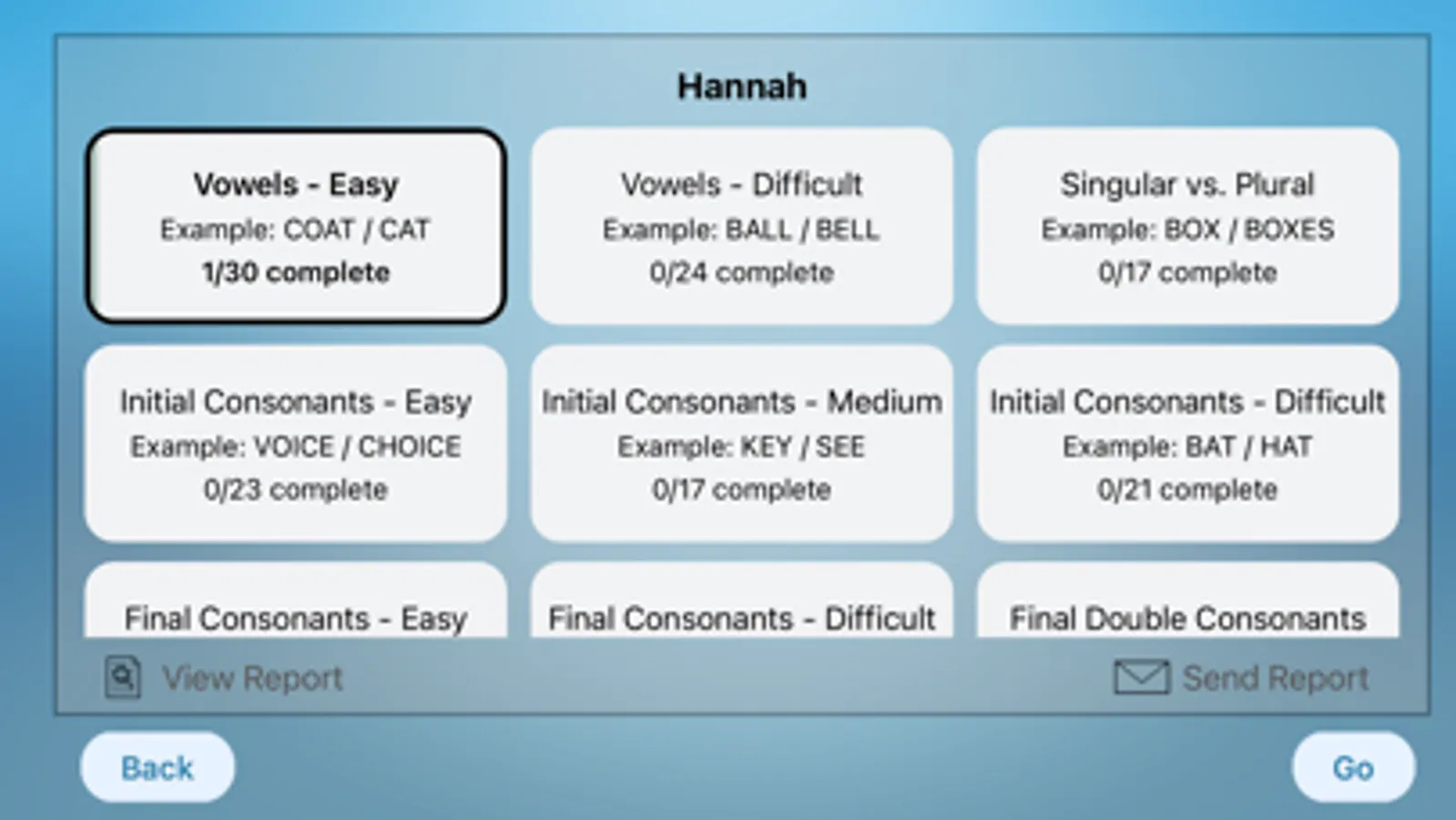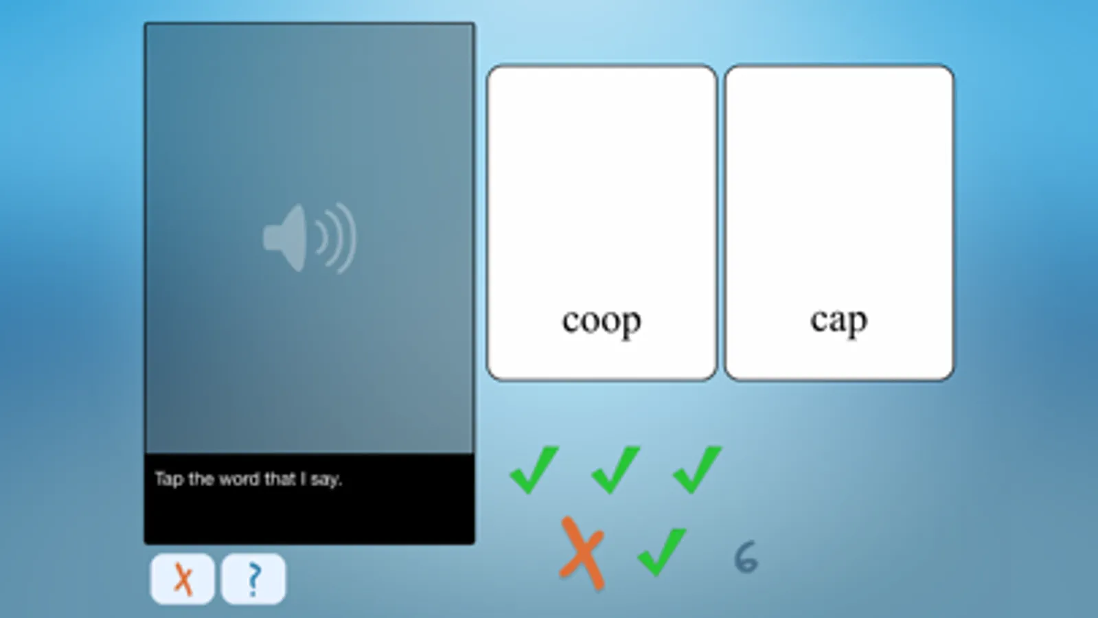 HearApp takes you through a series of auditory exercises. You'll practice identifying and discriminating words and phrases in quiet and with background noise. A pre-test places you or your child at the appropriate practice level. Visual prompts, repetition, and other listening helpers provide support along the way. Your progress is saved automatically and used by HearApp to personalize your listening sessions.