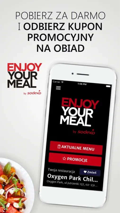 Pobierz Enjoy Your Meal by Sodexo za darmo a otrzymasz kupon promocyjny na obiad.