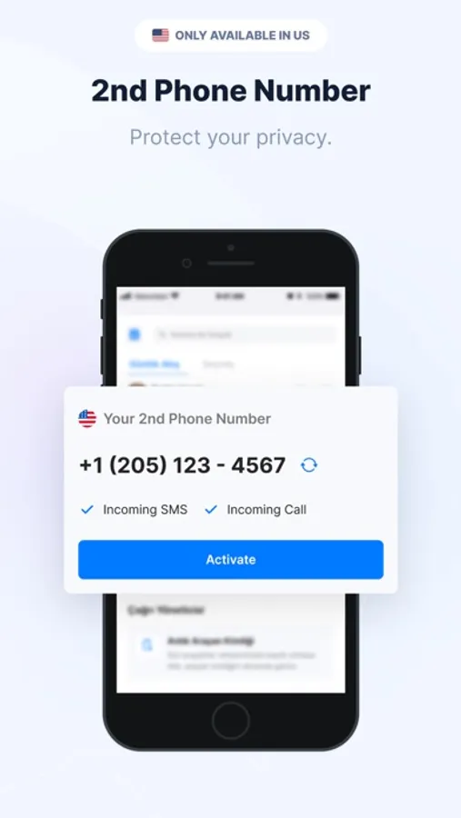 Second phone number service allows you to have a second mobile number that is not associated with your main number without the need for an additional SIM card. Choose your preferred number and start using it right away.