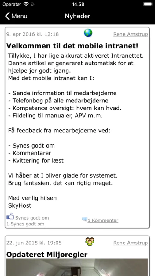 Skyhost Intranet, er en App' der kan tilpasses til at vise firmarelevant information på en iOS enhed.