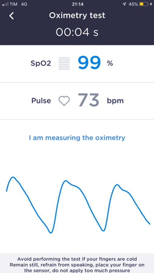During the test, the measurements are transferred in real time from the device to the smartphone. An intuitive animation helps the user to perform the test at best.
