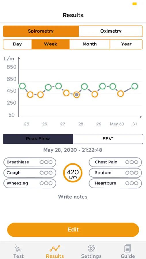 The SMART ONE system (app + device) measures FEV1 and PEF using the same exact technology currently used in the most advanced pulmonary labs worldwide.