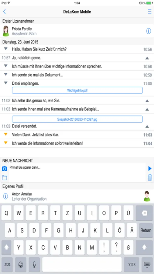 Das 1. medizinische Chatsystem ermöglicht gleichzeitig eine lückenlose Kommunikation und unterstützt effizient die medizinische Netzwerkbildung. Therapeuten und Technikern ermöglichen DeLaKom & DentaKom einen schnellen, rechtsicheren Datenaustausch von Patienteninformationen. Das System erschließt Ihnen eine äußerst effektive und zeitsparende Teamarbeit. Sowohl in der Praxis- oder Labororganisation als auch außerhalb.