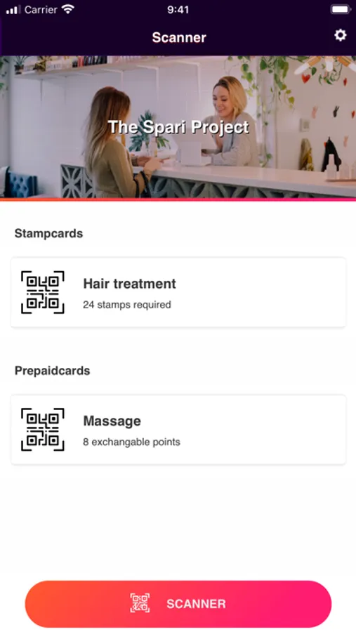 With this scanner app you will enable your company to easily hand out stamps, loyalty points and prepaid cards to your customers by scanning their personal QR-Code.