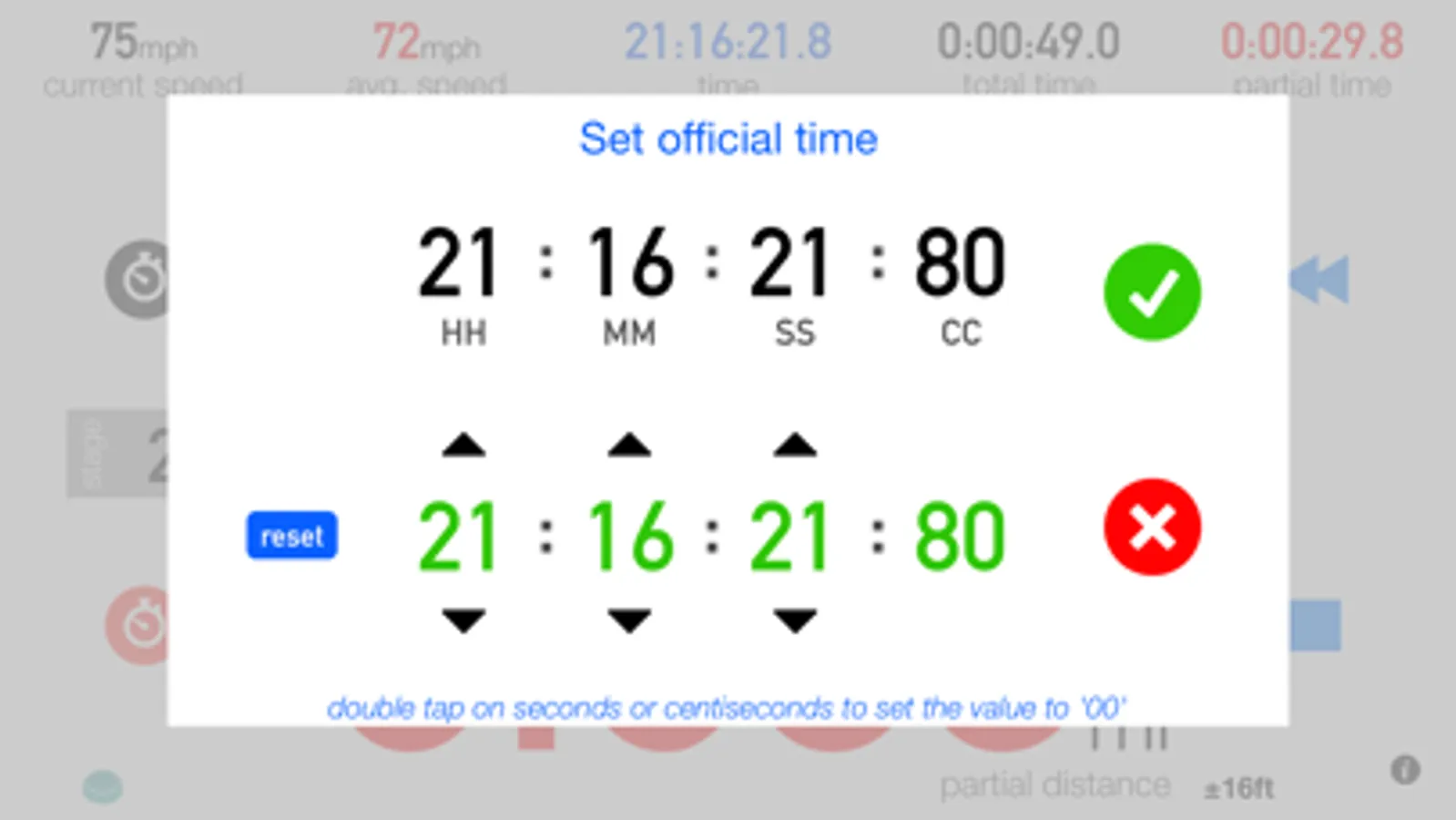 ● Reset the partial counter (distance, time and average speed)
