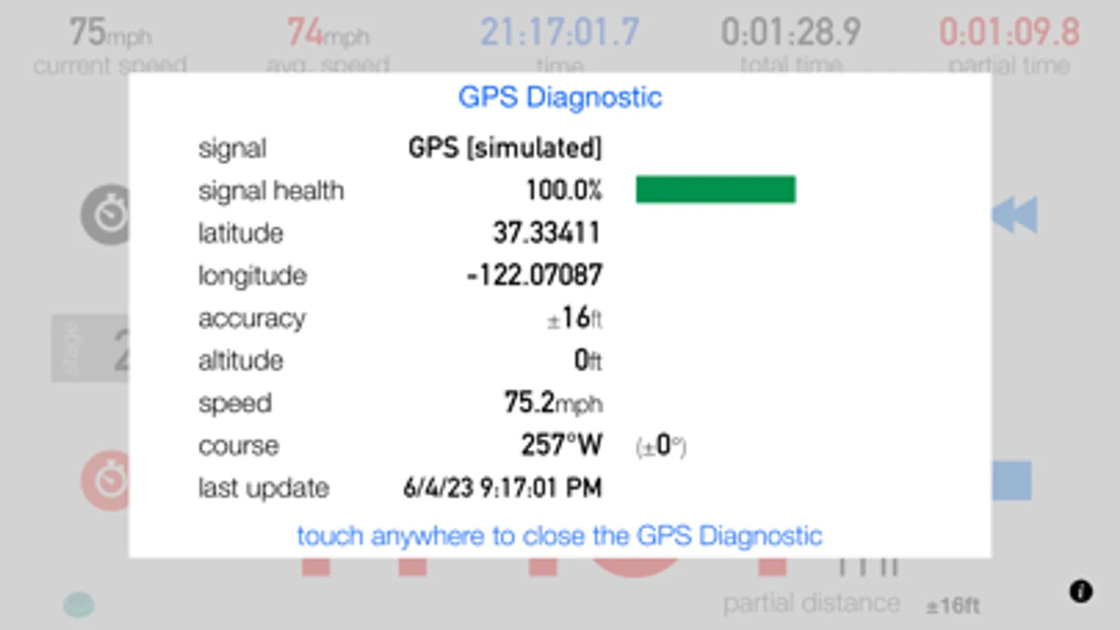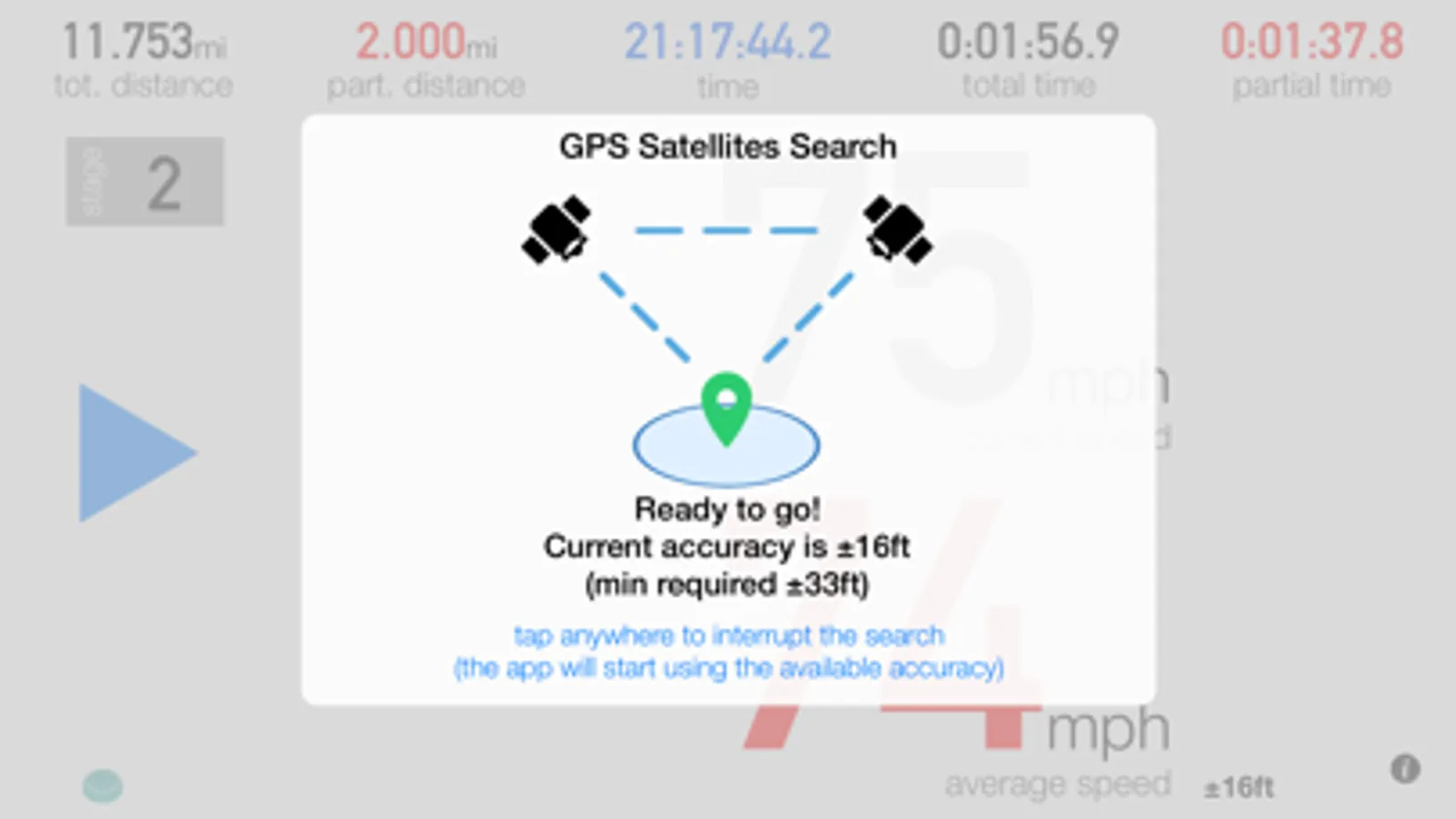 Please consider that 3pRally relies on the device GPS to measure the distances you travel. Accuracy may vary depending of the GPS satellite reception quality.