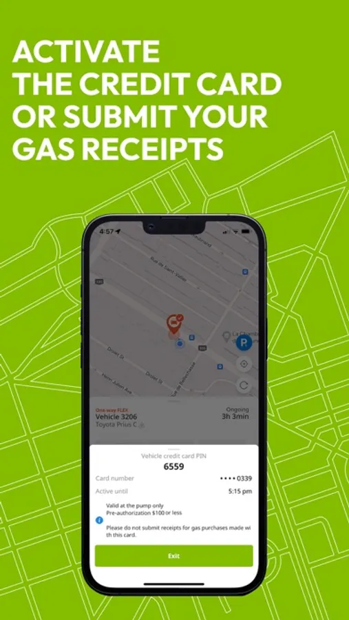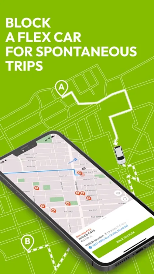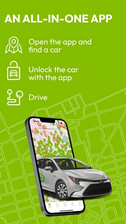 • Rent a carshare at low cost for a few minutes, an hour, a day or more and unlock it with the app!