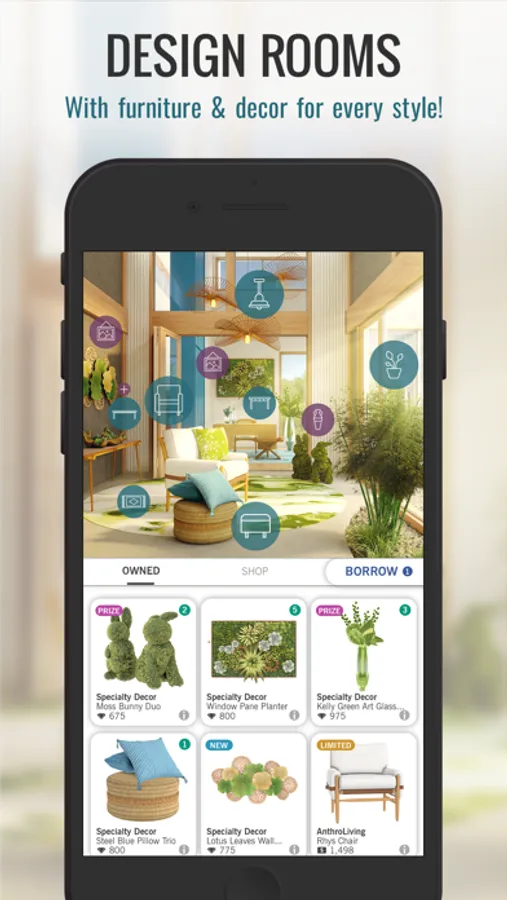Decorate and complete challenges that will test the interior designer in you. Experience the ultimate designer lifestyle in cities around the world. Escape to Paris and design a luxurious living room or travel to Vegas and spice up your room design with glittering luxe decor. AND NOW, you can even test your skills with landscaping in EXTERIOR DESIGN CHALLENGES! Choose from hundreds of furniture and garden décor pieces, with more added daily. Express yourself and learn about trends and top brands. From Jonathan Adler to West Elm, Design Home makes any pattern and color palette possible.