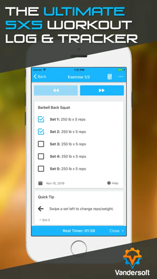 Simply choose which 5x5 (five by five) routine you want to follow and begin lifting! Your entire routine will be easily viewable and you can look back at your stats in a quick glance. You will not have to look at another percentage or weight chart again! Lose the spreadsheets! Take the planning out of your training so you can focus on lifting!