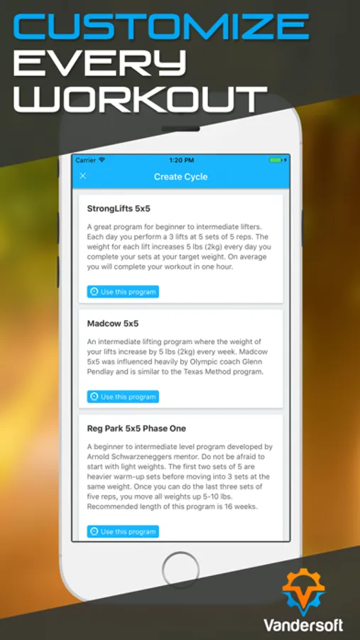 The lifts can be setup to automatically calculated based on how you lift and your body's own unique fitness level. Customize the programs as little or a much as you want. Stick with the most common 5x5 routines, or create your own unique program to follow directly in the app!