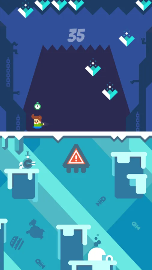 Run around panicking as obstacles fall from above to hit you! Your platform will move up and down making it easier or harder to avoid the obstacles as the game progresses! Collect coins to unlock beautiful backgrounds and characters.