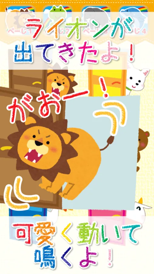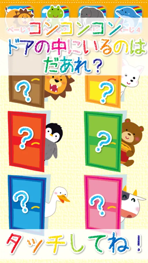 ドアのイラストをタップすると動物の名前と鳴き声が鳴り可愛く動きます。